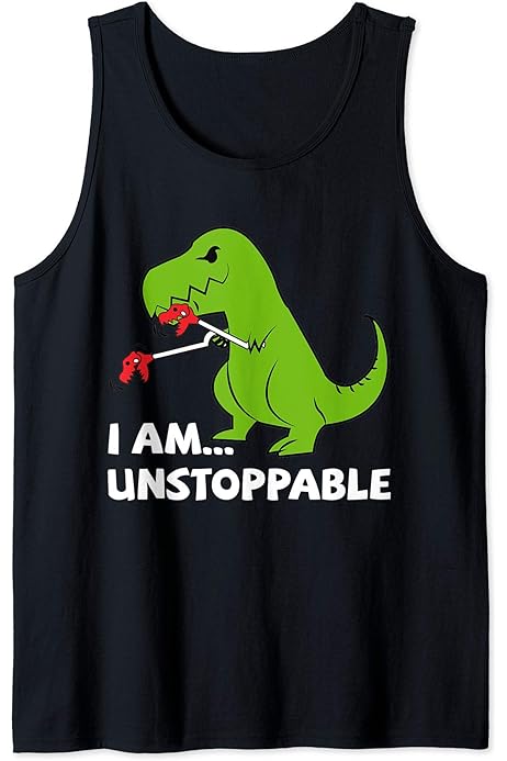 Amazon Com Now I M Unstoppable Funny T Rex Dinosaur Tank Top Clothing Shoes Jewelry